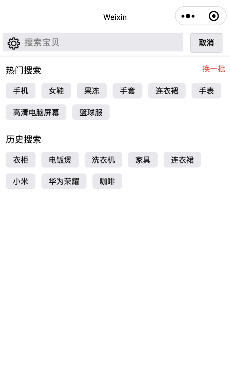 在微信小程序的界面中,通常在搜索框下方会有相关的标签,标签示例如图所示。