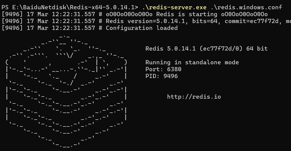 启动redis 服务器.\redis-server.exe .\redis.windows.conf