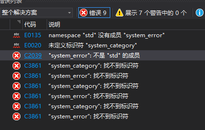 编译Win32_Interop.lib时报错, system_error不是std成员,解决办法为在Win32_variadicFunctor.cpp和Win32_FDAPI.cpp添加