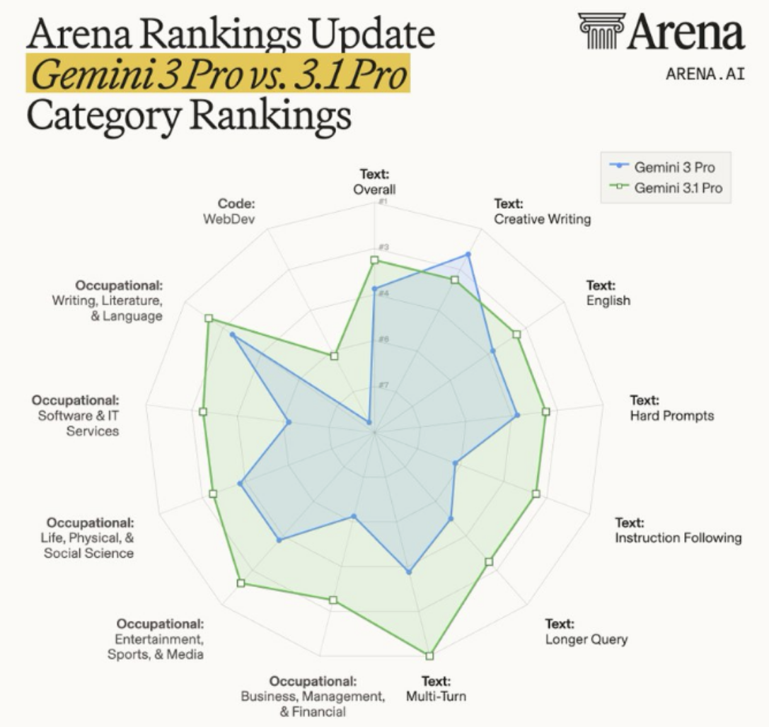 - 物理科学推理:在 CritPt 物理推理测试中,Gemini 3.1 Pro Preview 得分 18%,比第二名高出 5 个百分点。
