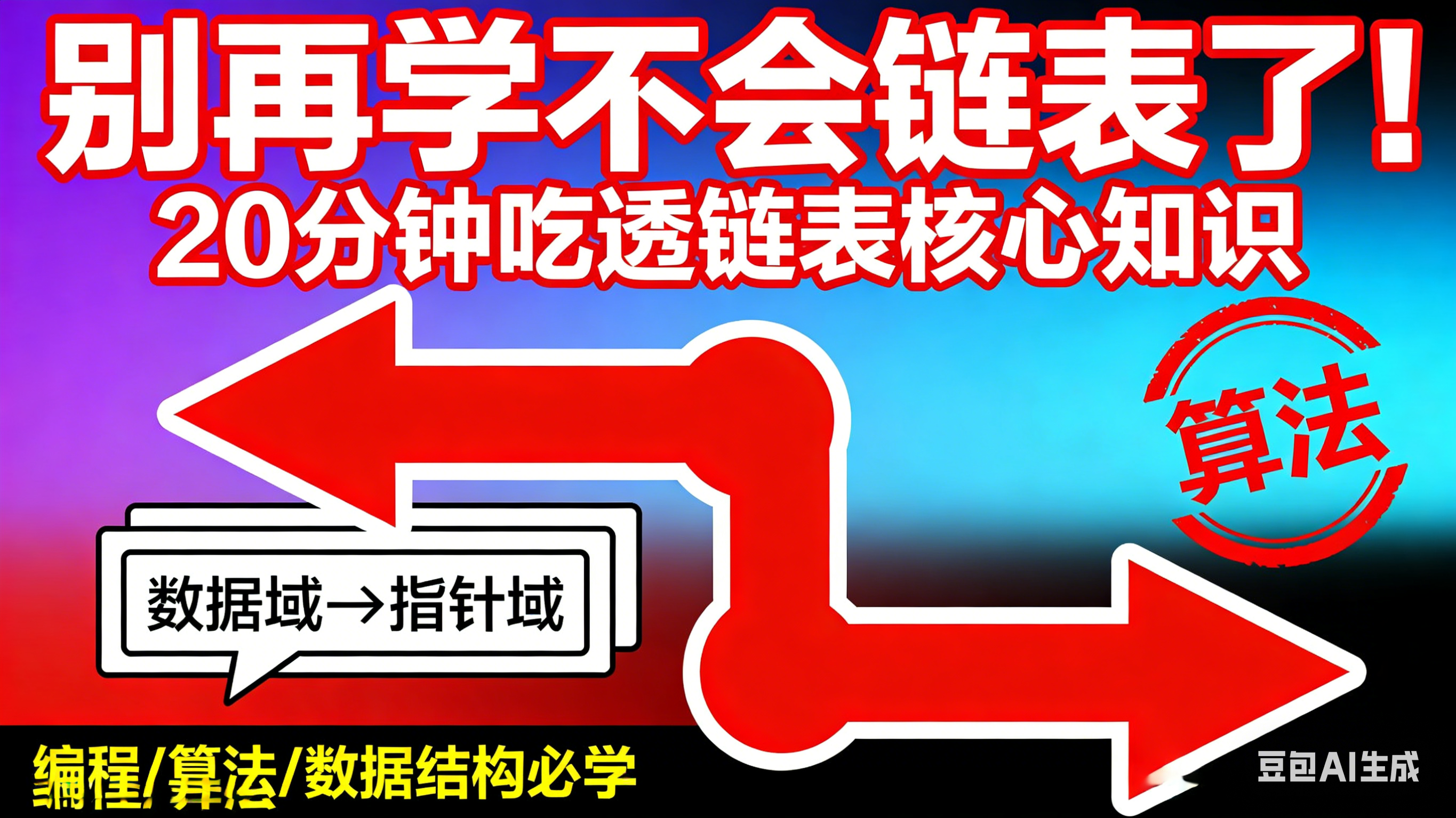 链表是由若干节点(Node)组成的线性数据结构,每个节点都包含两个部分:数据域 和指针域。数据域存储实际的数据,而指针域则存储着指向下一个节点的"地址"或"引用"。这种结构使得链表在内存中可以非连续地存储,就像散落在各处的珍珠,通过丝线(指针)串联成完整的项链。