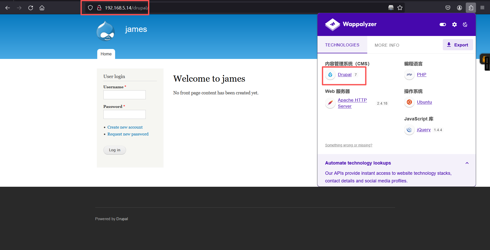 框架为cms:Drupal 7