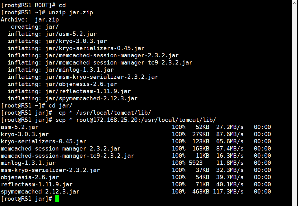 root@RS1 \]# yum install java-1.8.0-openjdk.x86_64 -y \[root@RS1 \~\]# tar zxf apache-tomcat-9.0.115.tar.gz -C /usr/local \[root@RS1 \~\]# cd /usr/local/ \[root@RS1 local\]# ls bin etc games include lib lib64 libexec sbin share src tomcat-9.0-doc \[root@RS1 local\]# mv apache-tomcat-9.0.115/ tomcat \[root@RS1 local\]# cd tomcat/