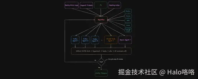 他弄的编排智能体叫 Zoe,主要负责:派生子智能体、编写提示词、为每个任务选择合适的模型、监控进度,并在 PR 准备好合并时通过 Telegram 通知作者。