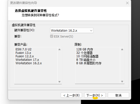 更改硬件兼容性