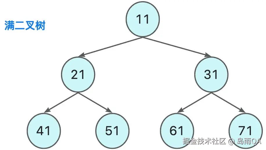 - 如果该二叉树的所有叶子节点都在最后一层 ,并且 结点总数= 2^n-1(n为层数) ,则我们称为满二叉树。