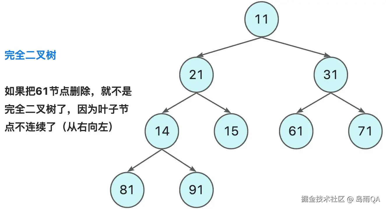 - 如果该二叉树的所有叶子节点都在最后一层或者倒数第二层 ,而且最后一层的叶子节点在左边连续 ,倒数第二层的叶子节点在右边连续 ,我们称为完全二叉树。