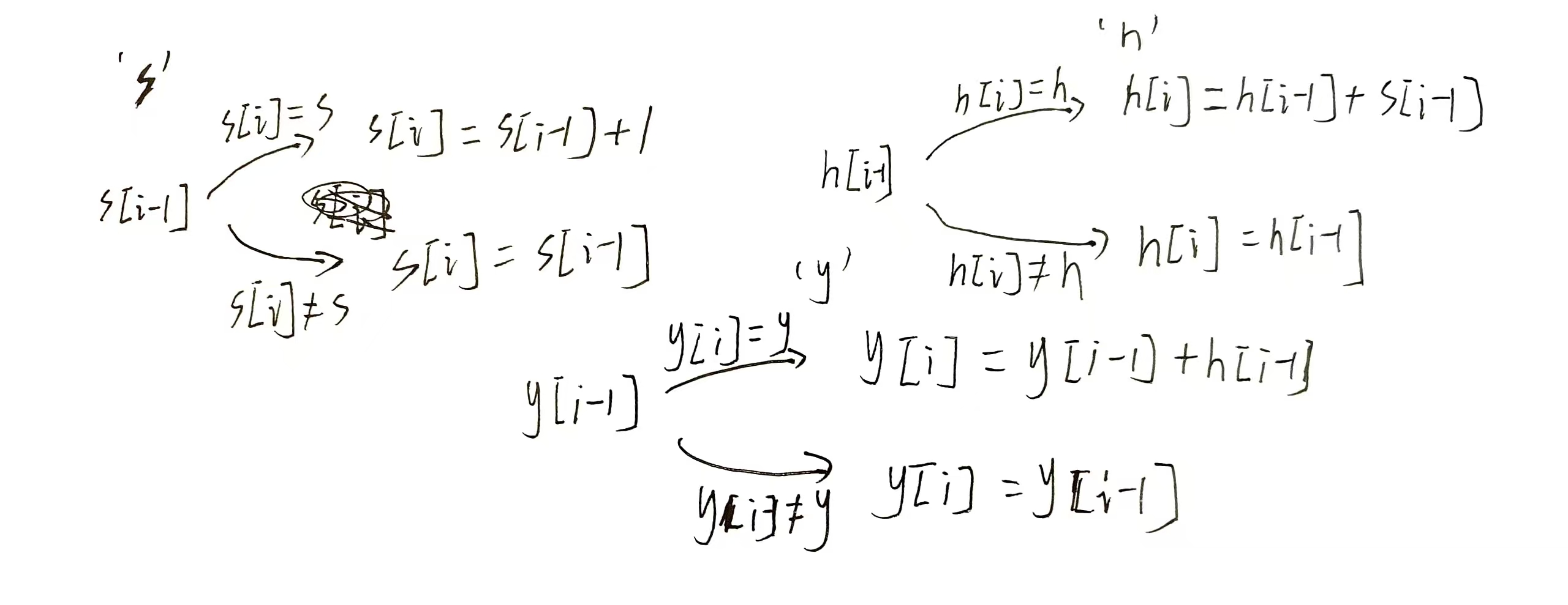 y[i] 表示:字符串 str 中 [0,i] 区间内,有多少个 "shy"