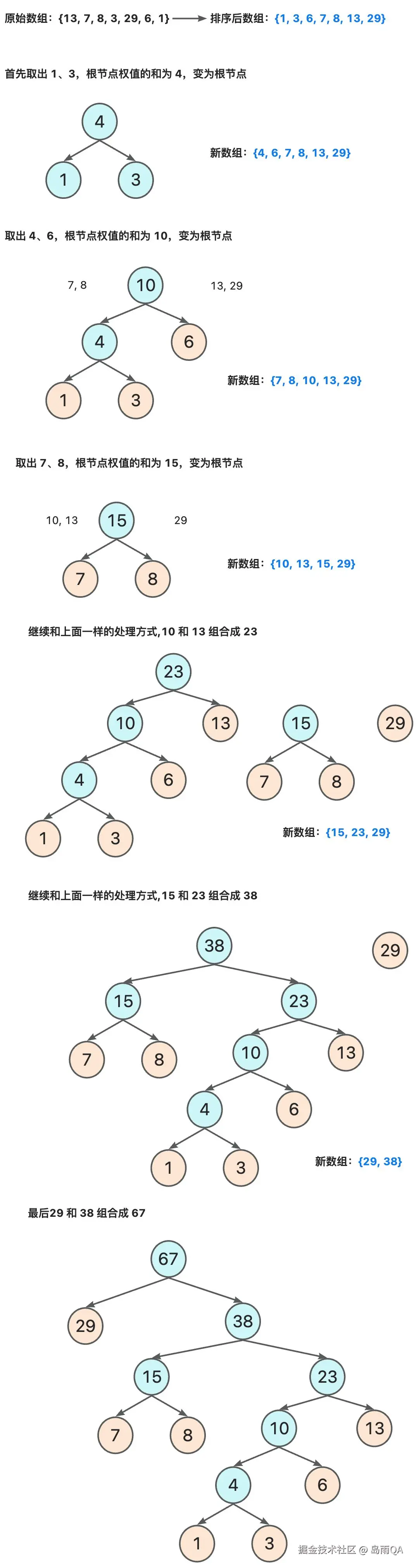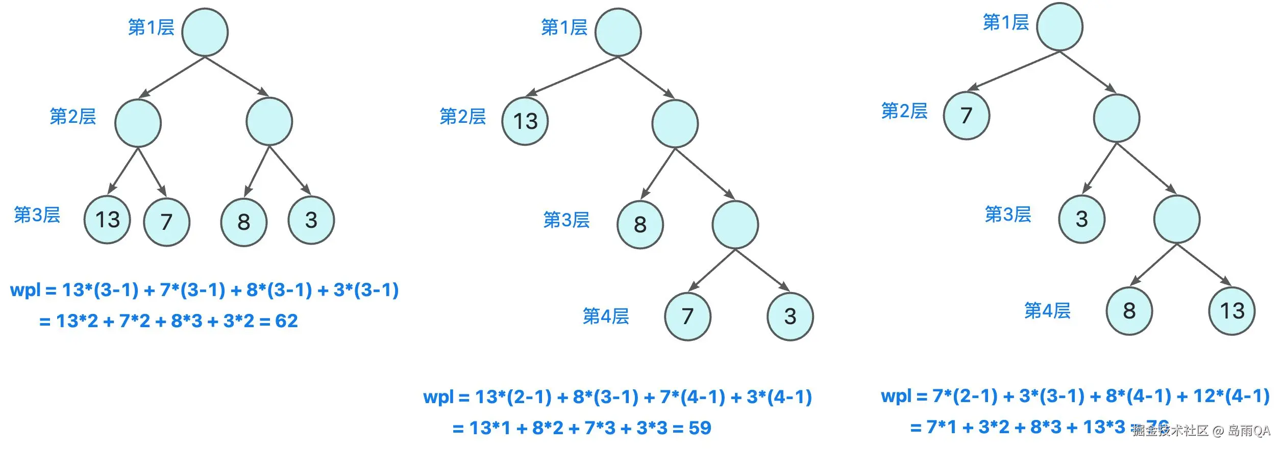 给定n个权值作为n个叶子结点 ,构造一棵二叉树,若该树的带权路径长度(wpl)达到最小,称这样的二叉树为最优二叉树 ,也称为哈夫曼树(Huffman Tree)。赫夫曼树是带权路径长度最短的树,权值较大的结点离根较近。