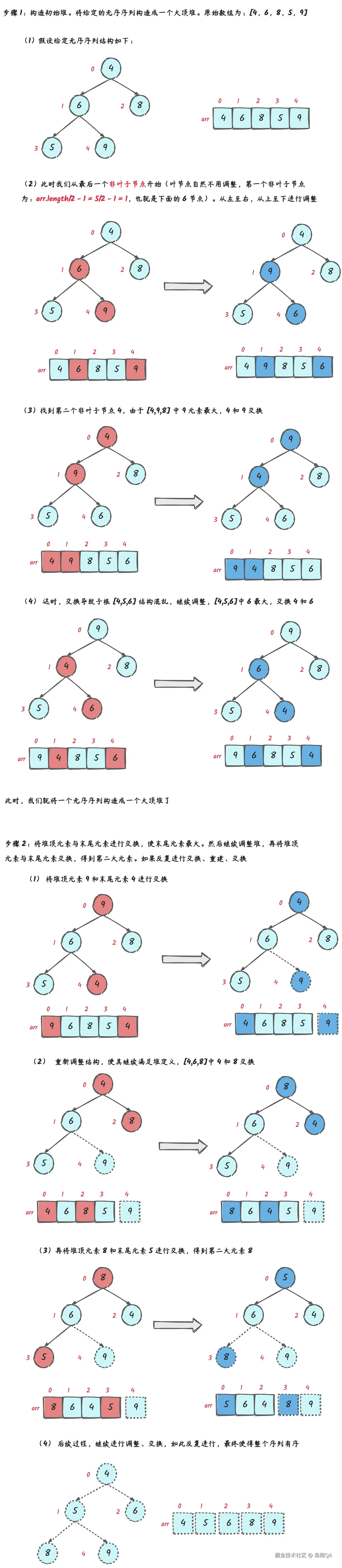 // (3) 重新调整结构,使其满足堆定义,然后继续交换堆顶元素和末尾元素,反复执行调整加交换步骤,直到整个序列有序。
