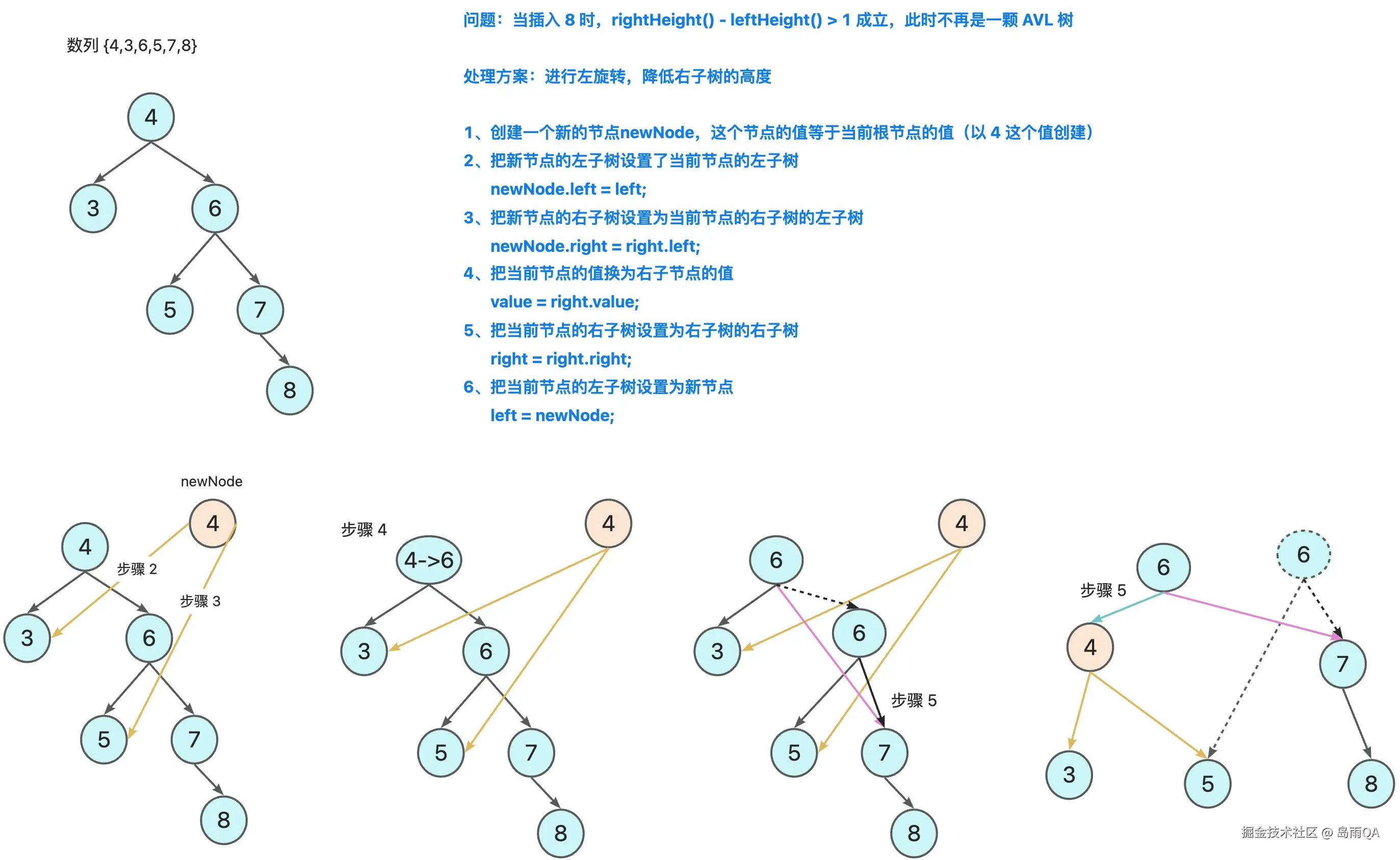 需求:将数列 {4,3,6,5,7,8},创建出对应的平衡二叉树