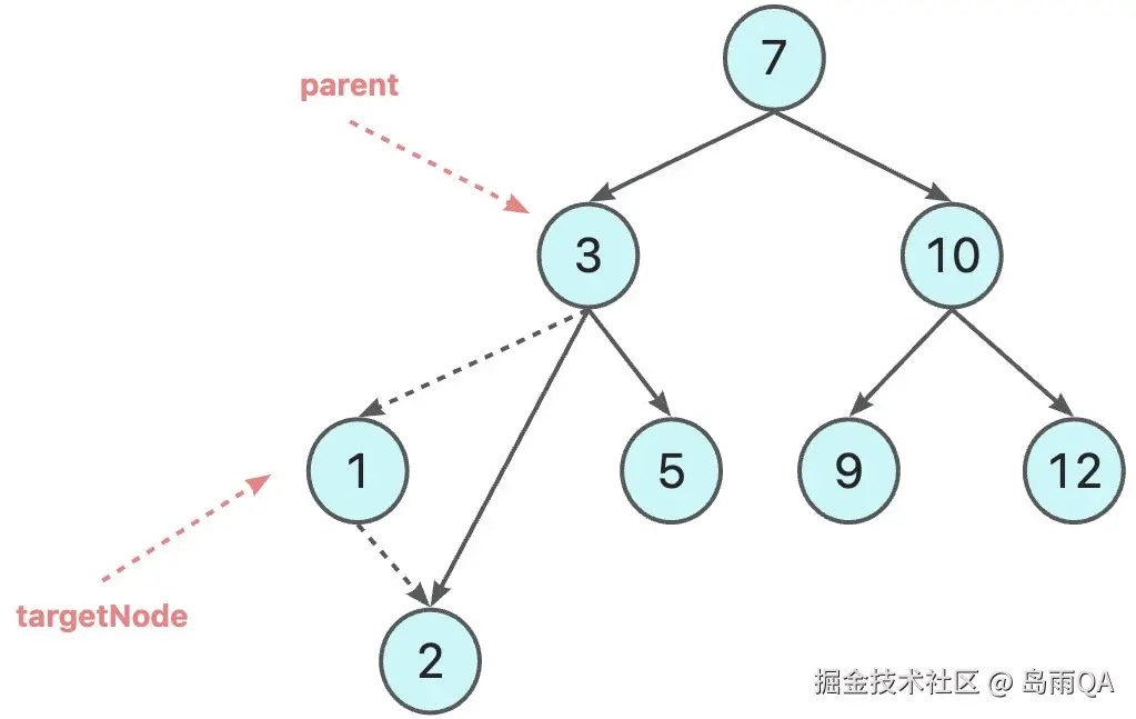 - 将A节点的右节点,指向A节点的右节点的左节点