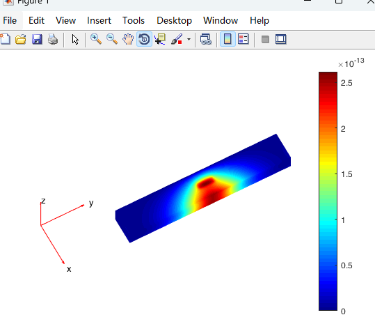 pdeplot3D(model,'ColorMapData',results.Displacement.Magnitude,...