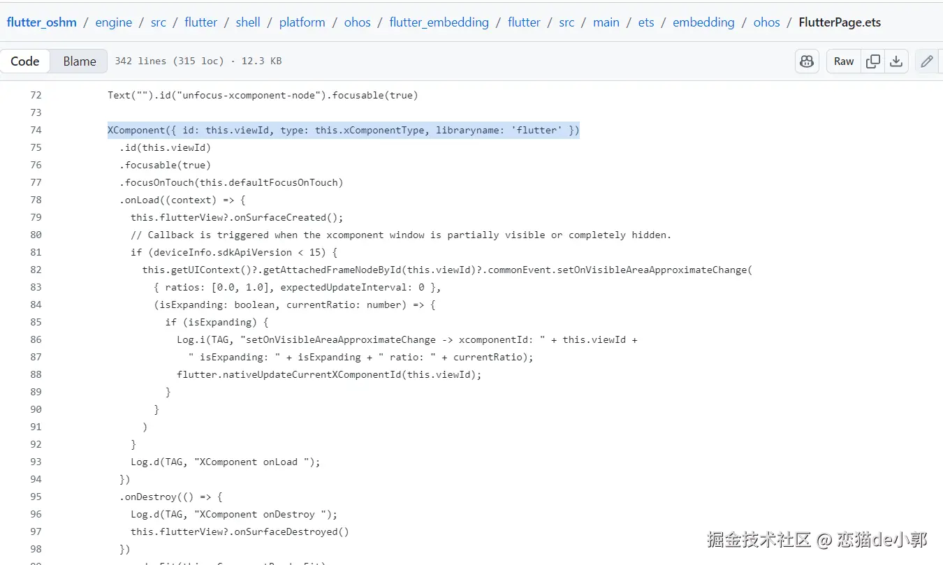 3、渲染上, FlutterPage 是鸿蒙特有的渲染容器, 用 XComponent 作为 Flutter 渲染的承载 ,FlutterPage.ets 中的 ArkUI XComponent 指定了 libraryname: 'flutter' ,所以会加载 libflutter.so 并触发 library_loader.cpp 中的 NAPI 注册 :