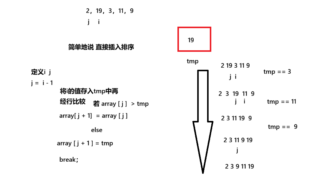 此外 在当 i = 1 时 j = 0 ,j--会数组越界找不到下标,所以下标 0 要单独添加 array [ j + 1] = tmp