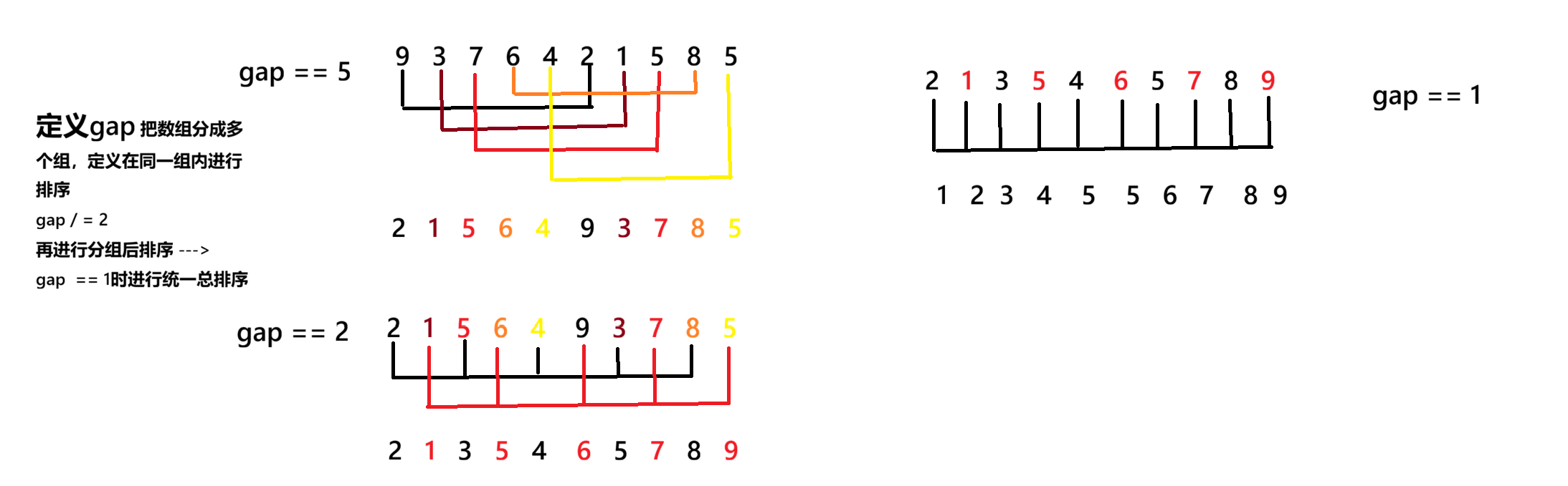 注意 :希尔排序是直接排序的进阶版 利用gap加快排序 但是希尔排序是一种不稳定的排序