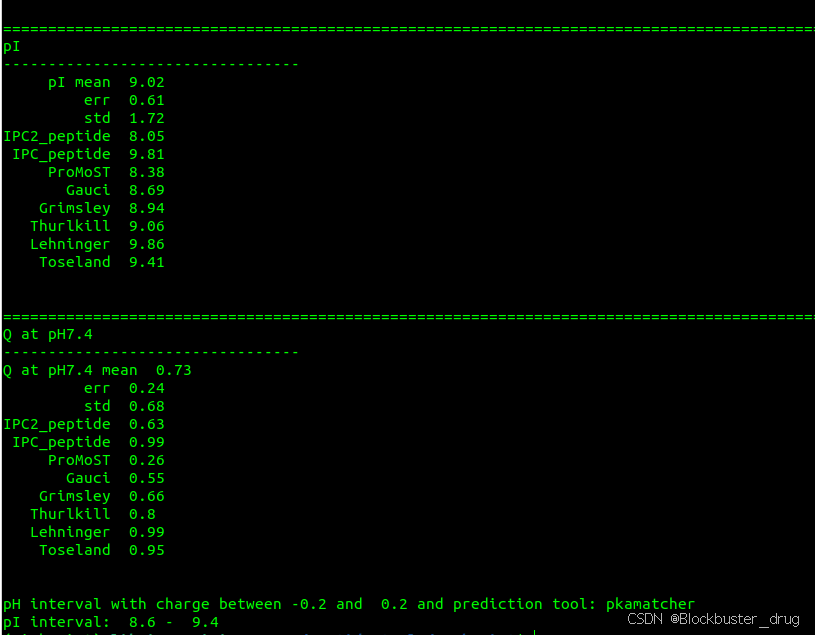 💡 优势 :不依赖单一 pKa 来源,而是集成多套参数 ,给出 pI 的不确定性估计(std/err),提升结果可靠性。