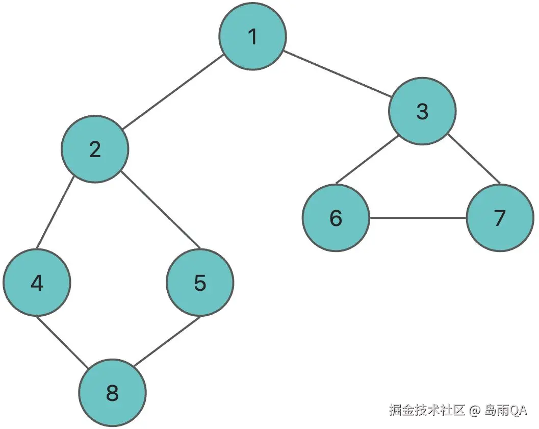 - 广度优先算法的遍历顺序为:1->2->3->4->5->6->7->8