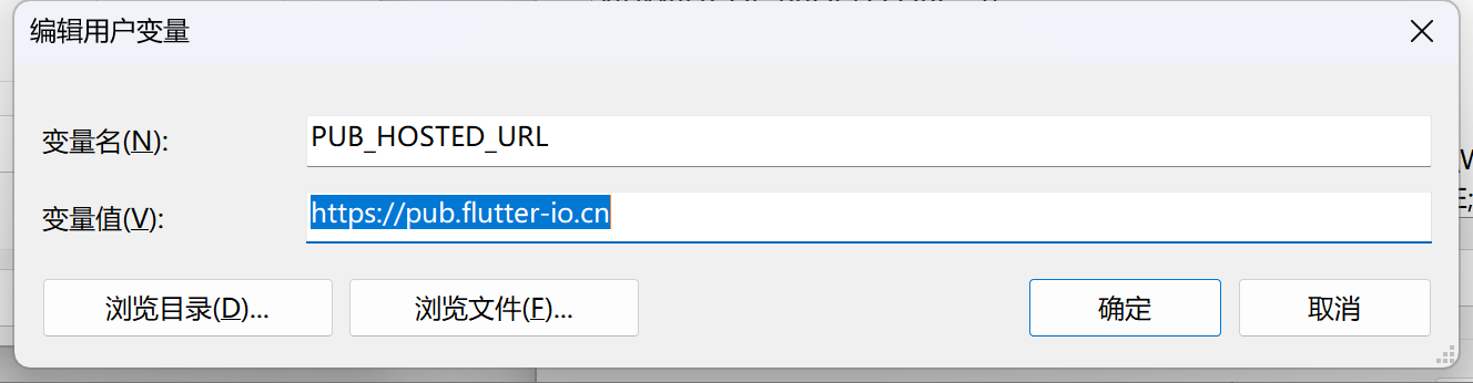 D:\flutter\bin - 新增【变量 PUB_HOSTED_URL】