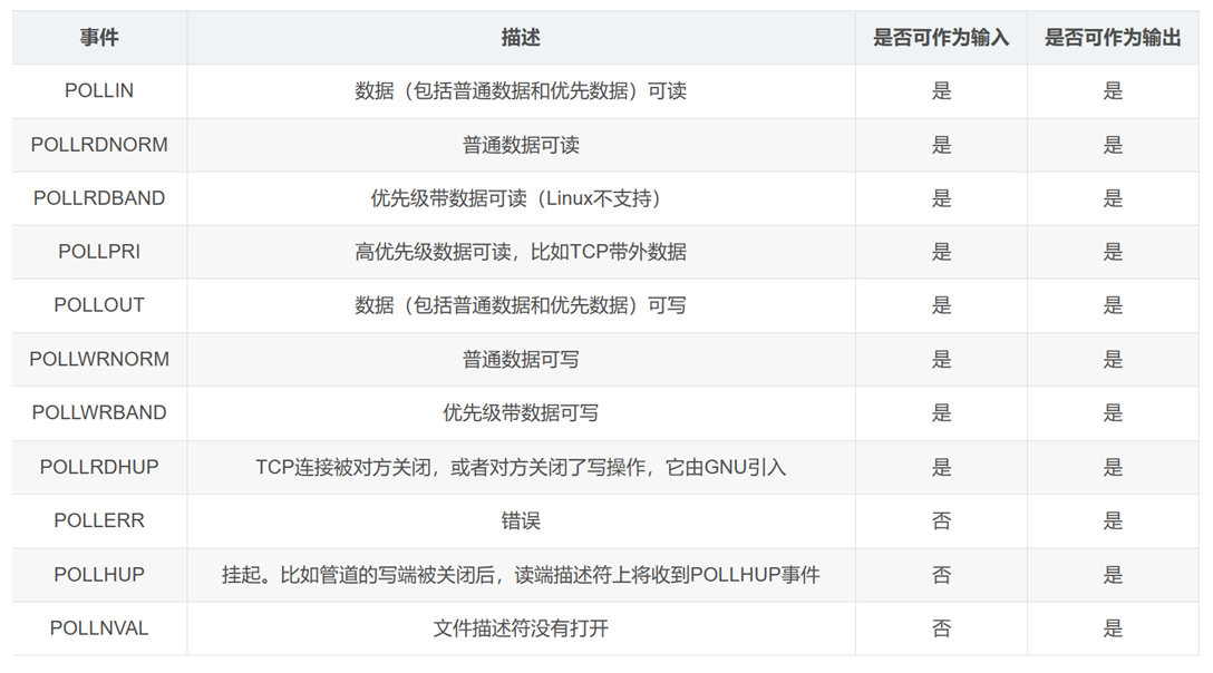 readfds,writefds,exceptfds分别对应于需要检测的可读文件描述符的集合、可写文件描述符的集合以及异常文件描述符的集合;这三个参数都是输入输出型参数,输入进来的是要监视的文件描述符,输出的是资源就绪的文件描述符。
