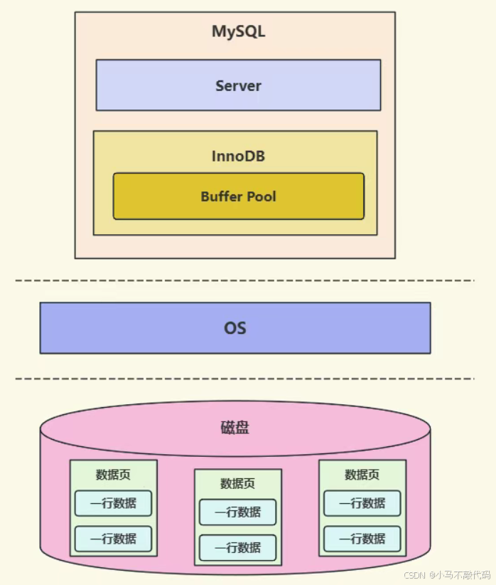 读取数据时:先查Buffer Pool。如果数据在缓存中(缓存命中),直接从内存读取;如果不在(缓存未命中),再去磁盘读取,同时把读取到的数据载入Buffer Pool,方便后续复用。