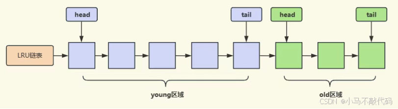 另外,young区前1/4的页被访问时,不会移动到头部,避免频繁移动带来的开销。