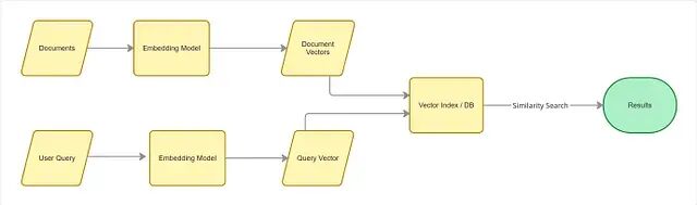 不再比较字面上的词而是比较含义。把文档和查询都转换成数值向量(Embedding),这些向量编码了语义信息。即使两段文本用词完全不同,只要意思相近,它们的向量在空间中就会彼此靠近。