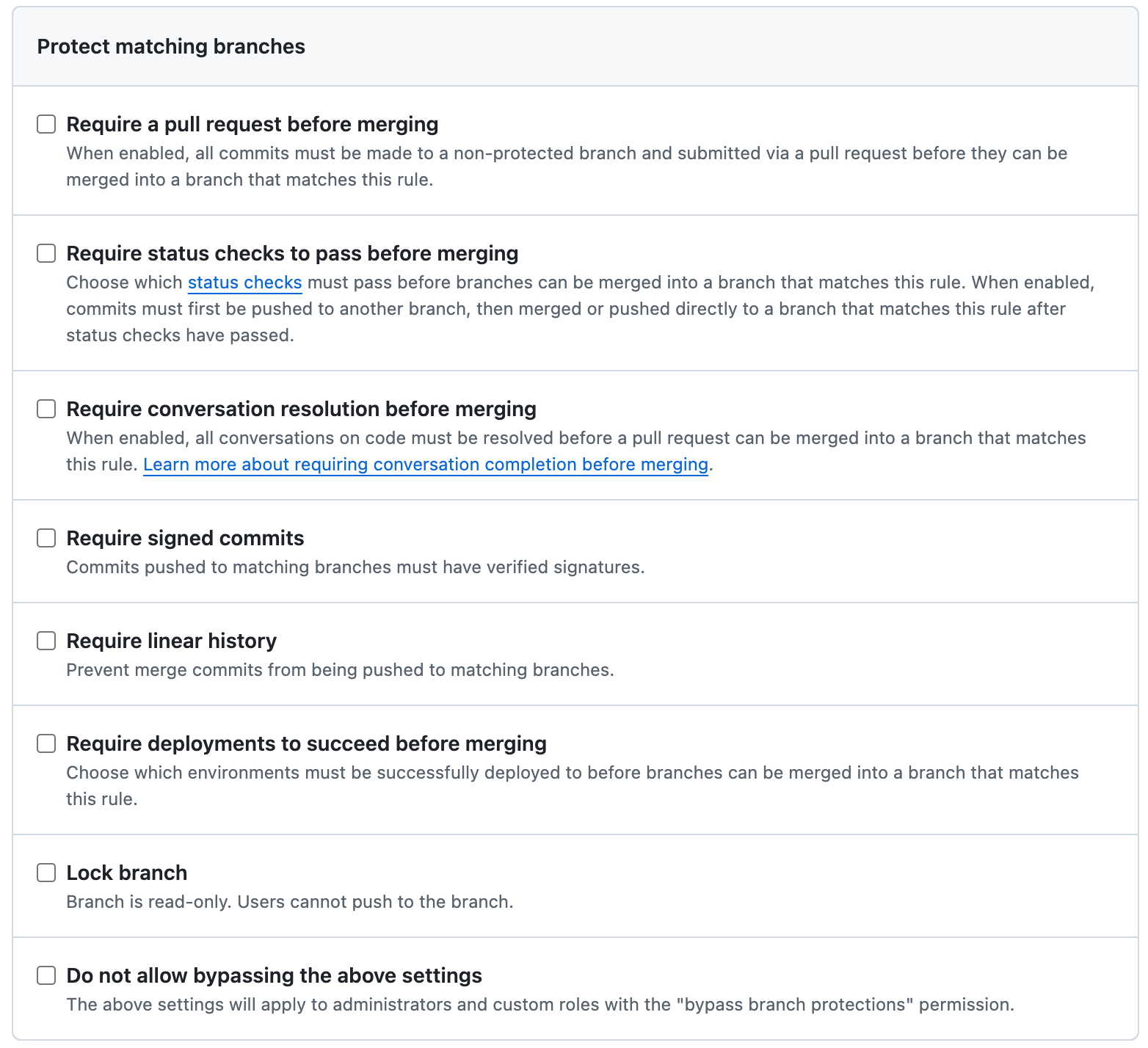Github的Settings → Branches → Branch protection rules对main分支设置