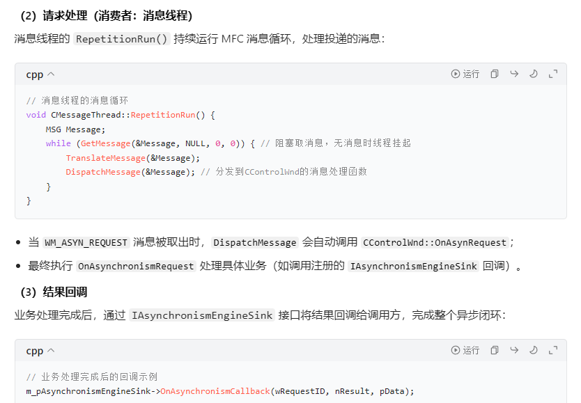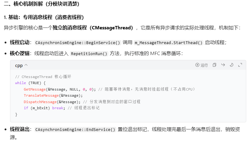 - MFC 程序的 UI 线程(主线程)不能阻塞,否则界面会 "卡死";通过该引擎将任务异步提交到专用消息线程,UI 线程可立即响应用户操作;