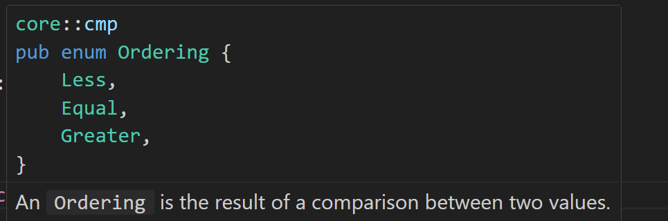 这里的Ordering是一个枚举类型,代表数字比较的三种不同结果。