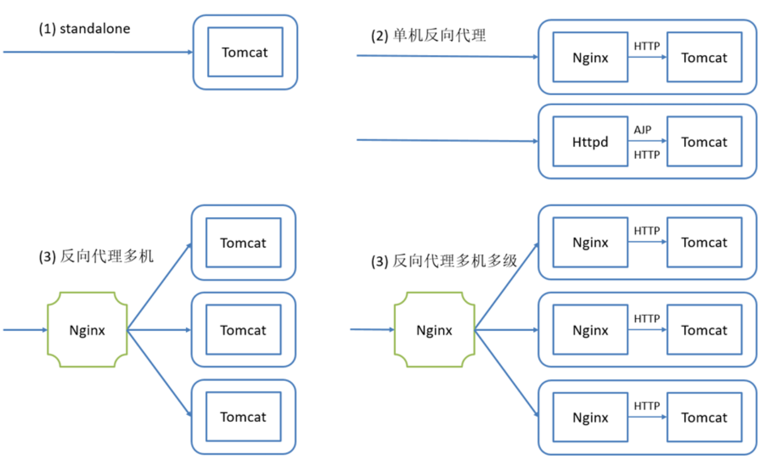引入反向代理(如 Nginx、Apache HTTP Server、HAProxy)后,上述问题都能得到有效解决: