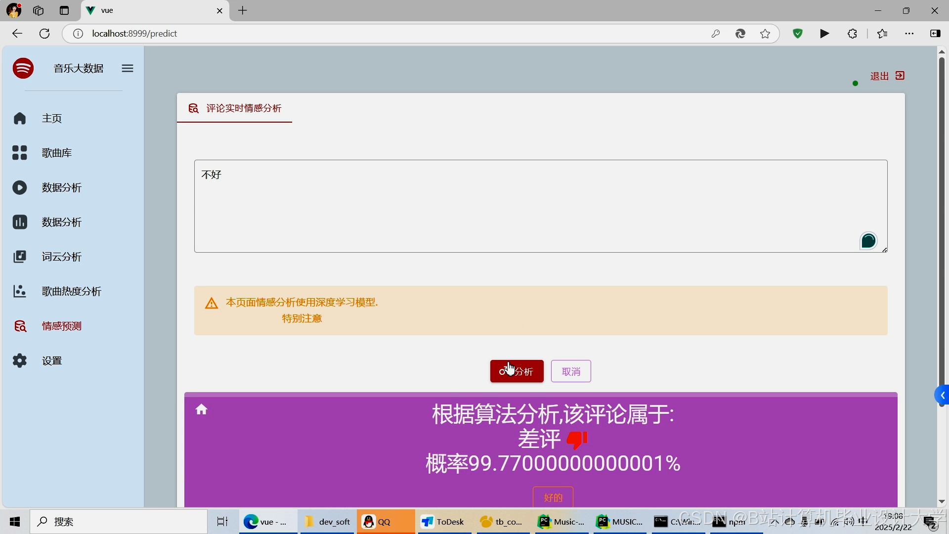 设计并实现基于Django+Vue.js的音乐推荐与可视化平台,解决以下问题: