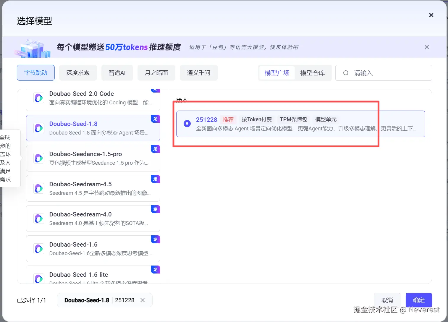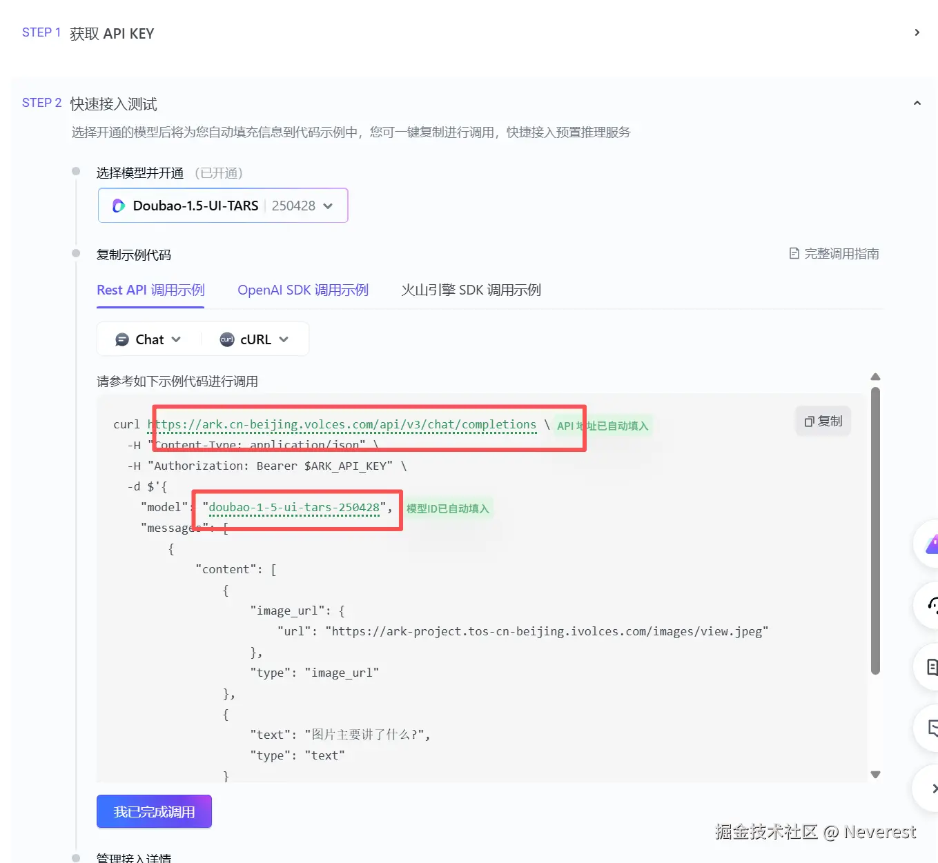按照火山方舟模型广场中提供的配置如下: