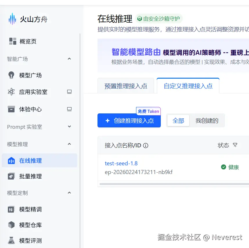 最终选择Doubao-Seed-1.8的多模态模型进行测试,创建对应的自定义推理接入点可以正常测试。