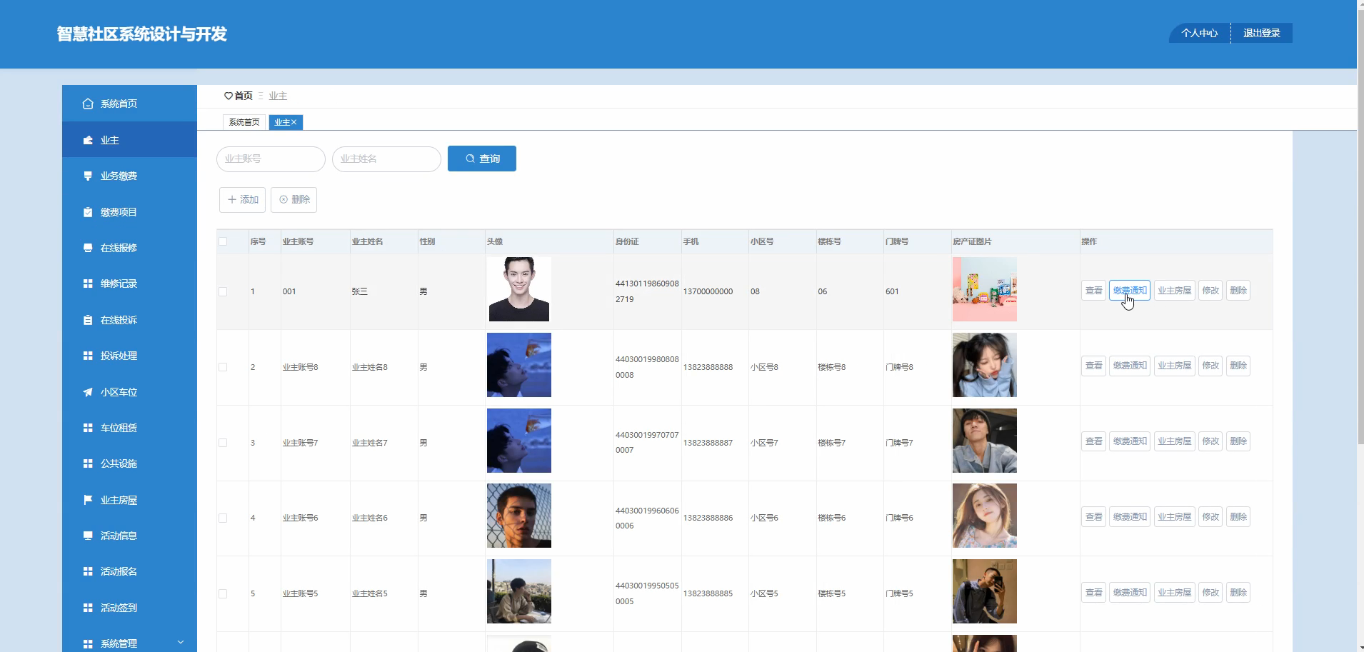 - 物业费用查询与缴纳:居民可以查看自己的物业费用账单,并通过系统实现在线缴纳。
