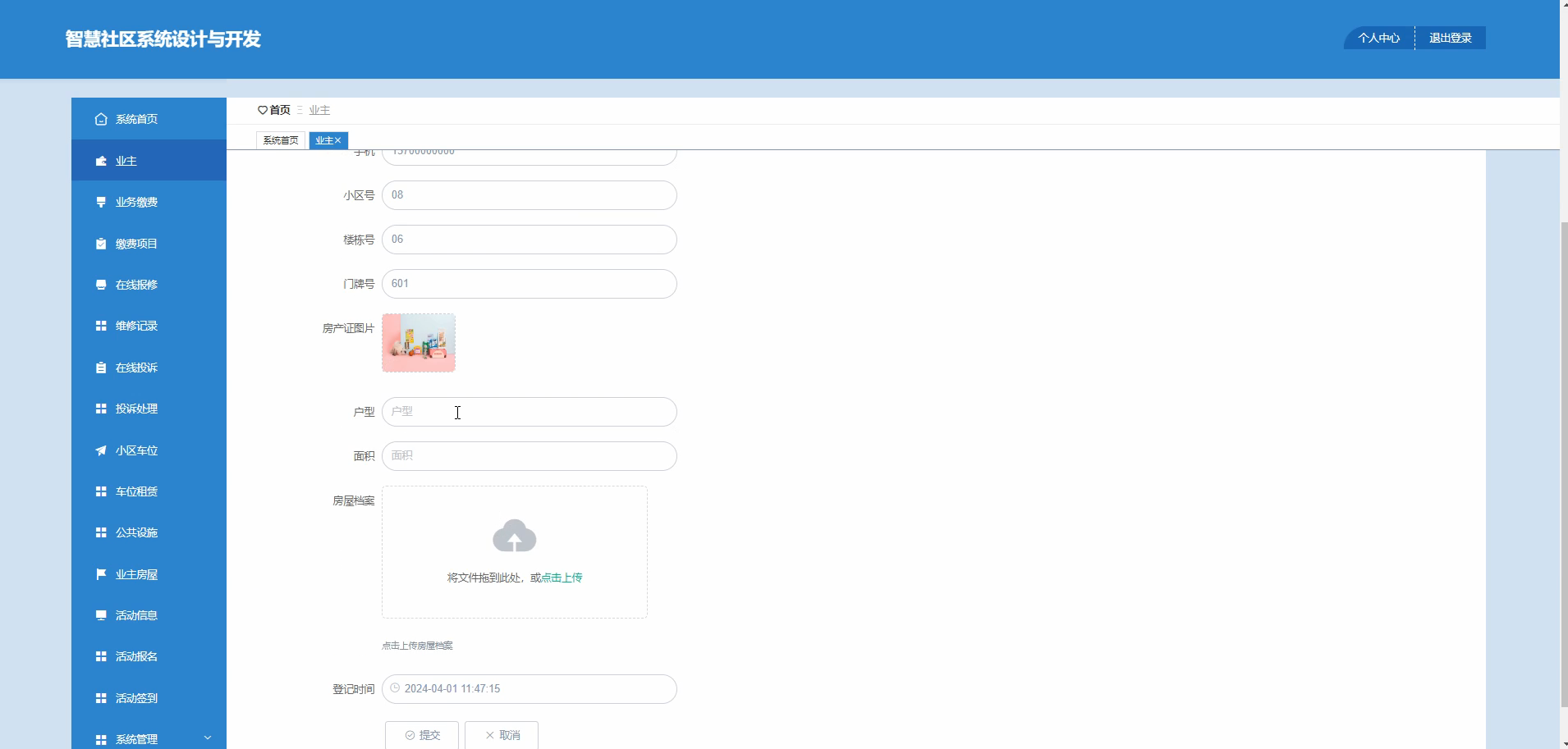 - 个人信息管理:居民可以查看和编辑自己的个人信息,如姓名、联系方式、住址等。