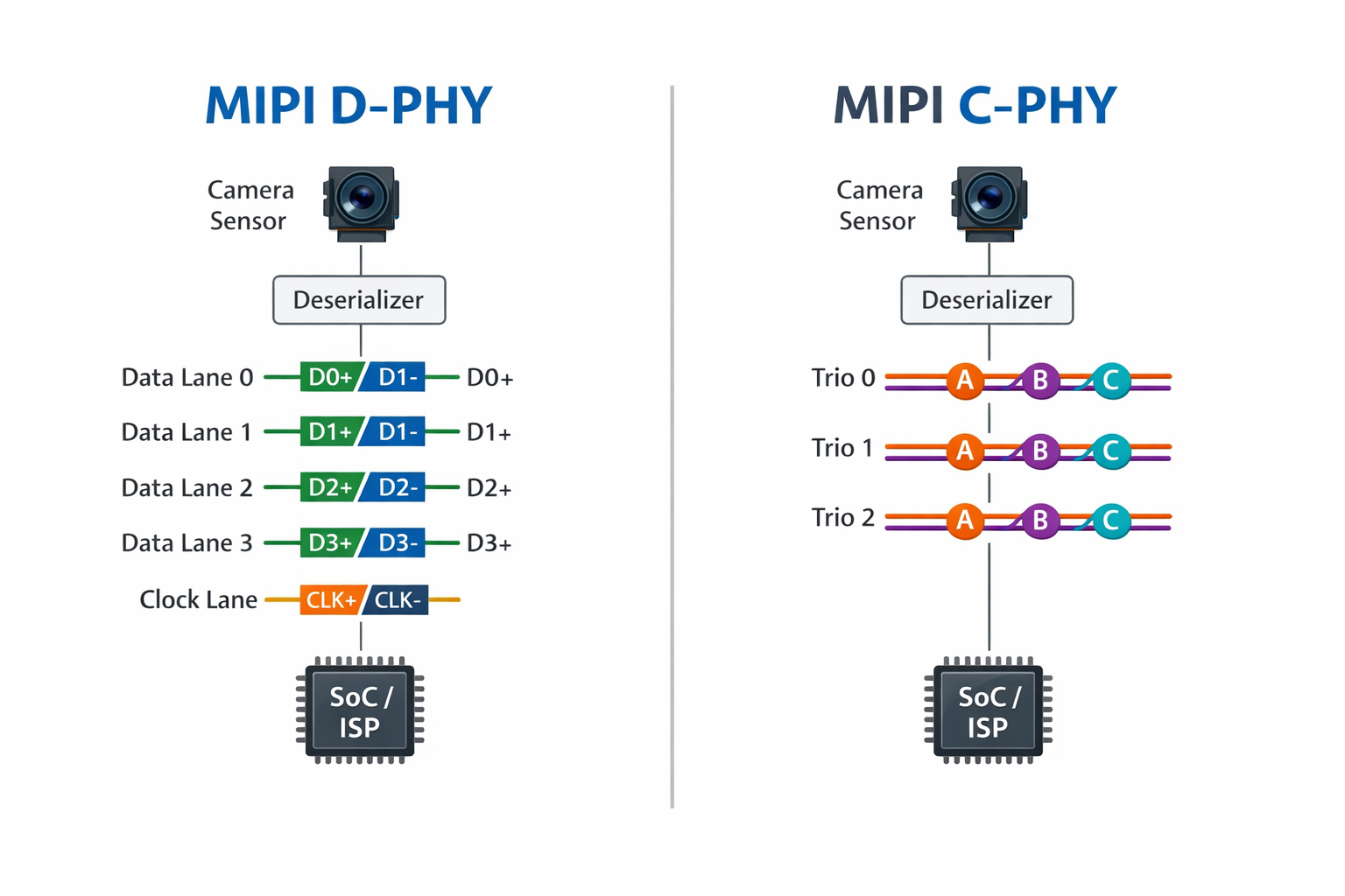 | 典型连线 | Clock + Data Lanes | 直接 Data Lanes |