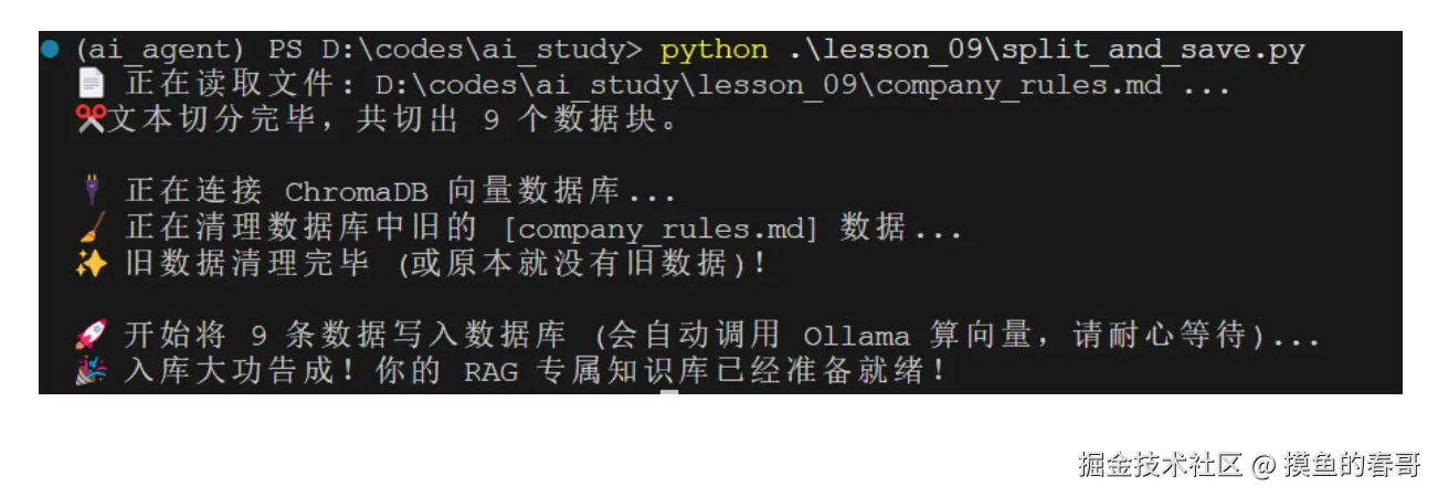你只需要 pip install chromadb。然后在代码里写一句 chromadb.PersistentClient(path="./my_rag_db")。它就会在你的项目目录下建一个普通文件夹,把所有数据存在里面。没有服务进程,不需要配置端口,随时打包带走。