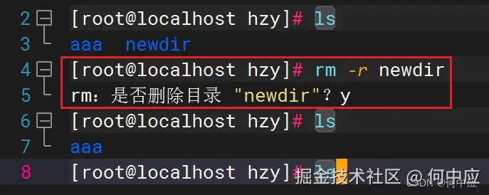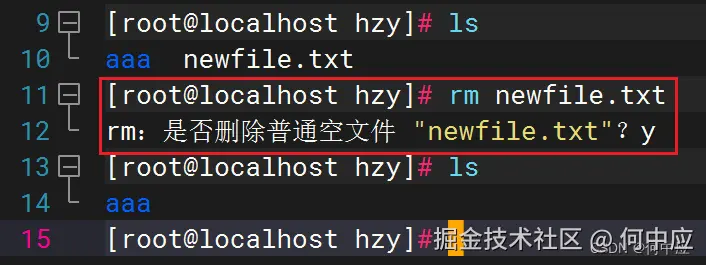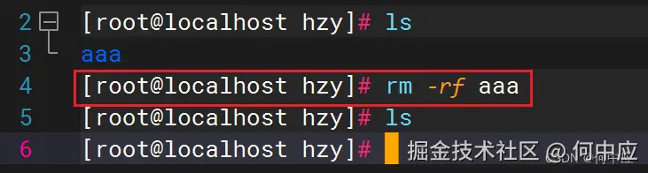 rm -rf 文件名:忽略询问,直接删除,文件可以是文件夹或者其他文件;