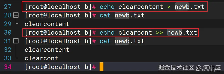 echo 内容 >> 文件名称:把内容追加写入到文件中;