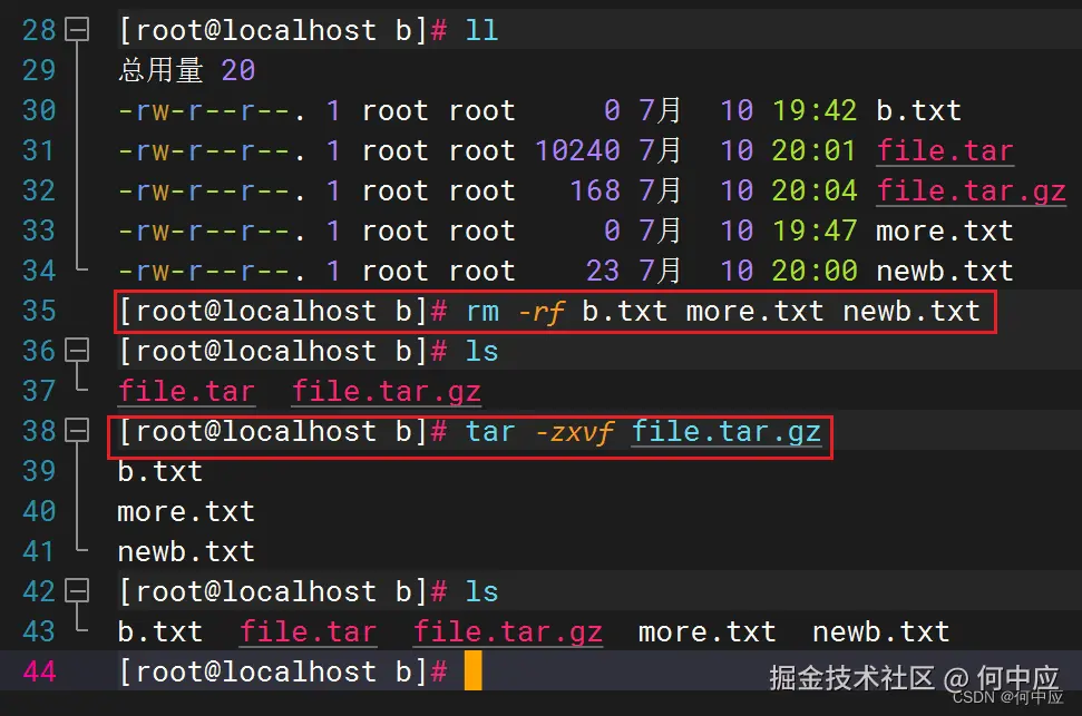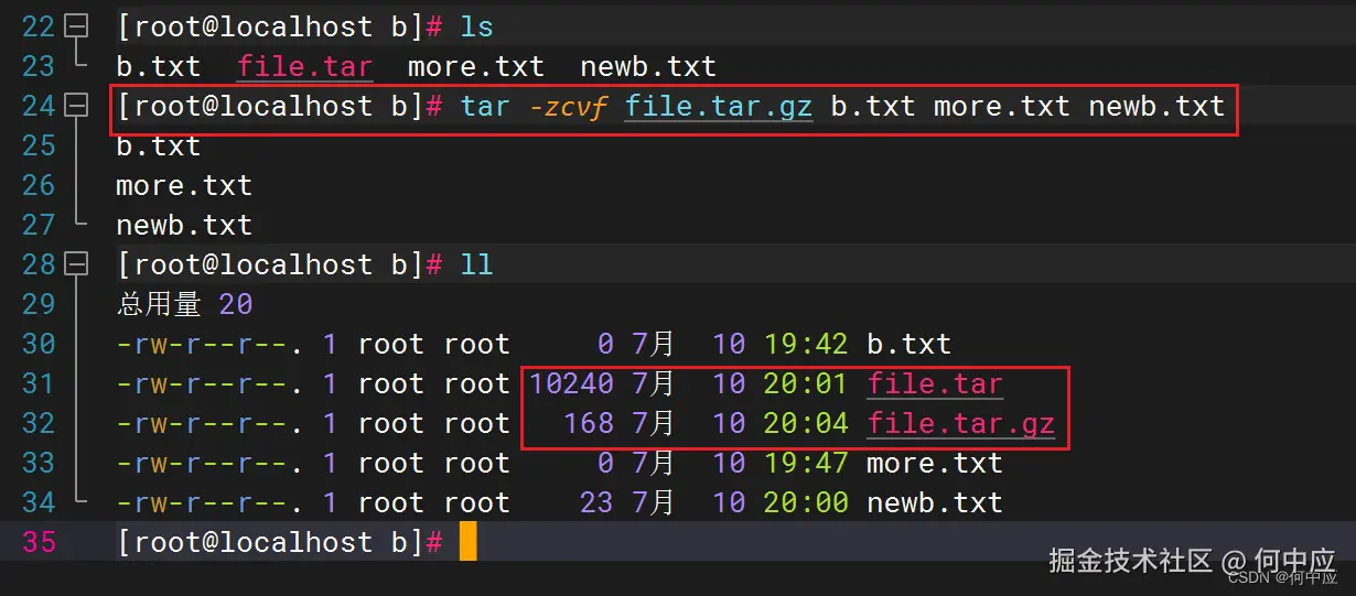 tar -zcvf 压缩包名.gz 文件1 文件2 文件3:压缩;