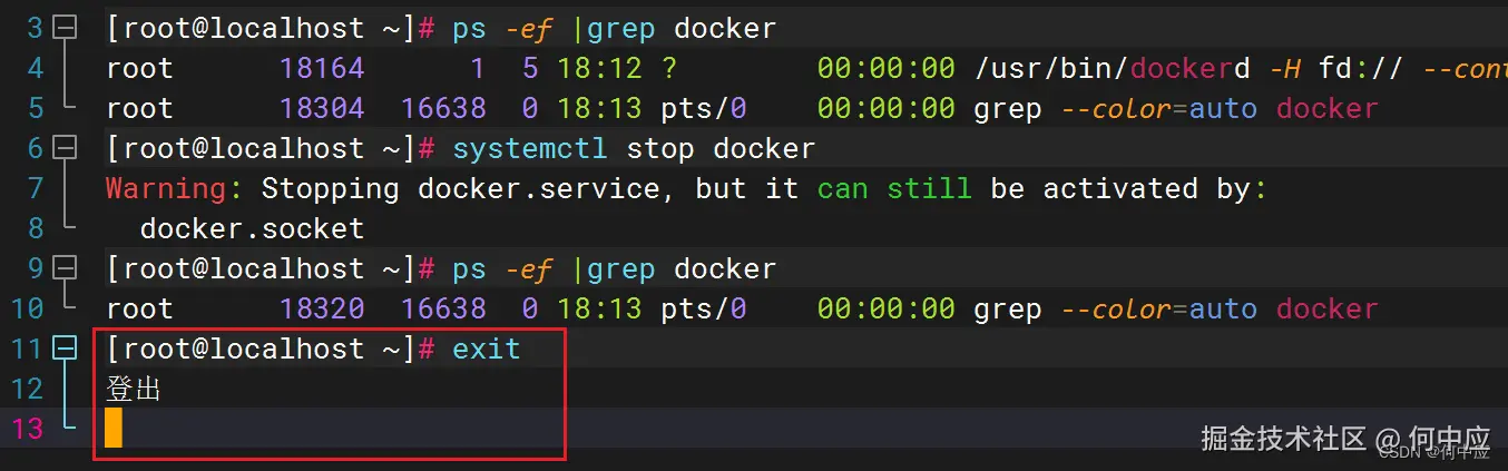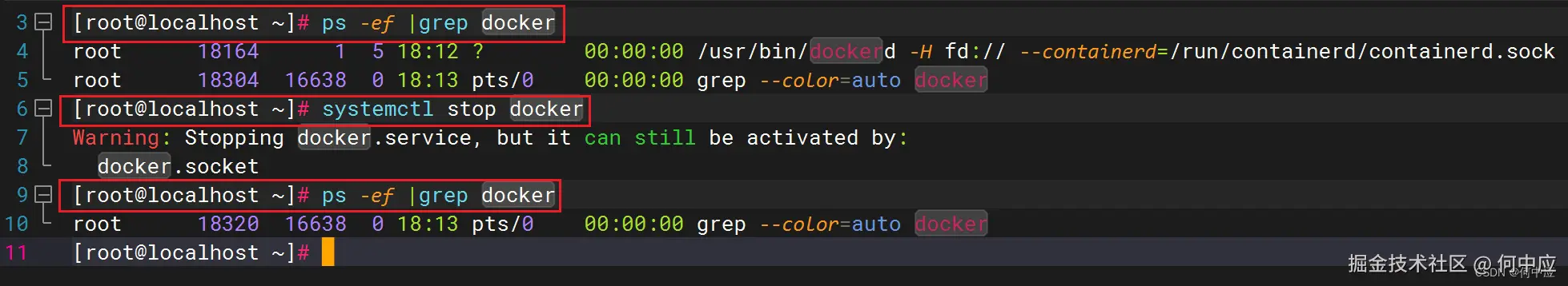 systemctl stop/start docker:启动或终止某个服务(如docker);