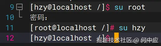 (普通用户切换超级用户需要输入密码,反之不用,可通过命令行前面的符号#、$符区分超级用户、普通用户)