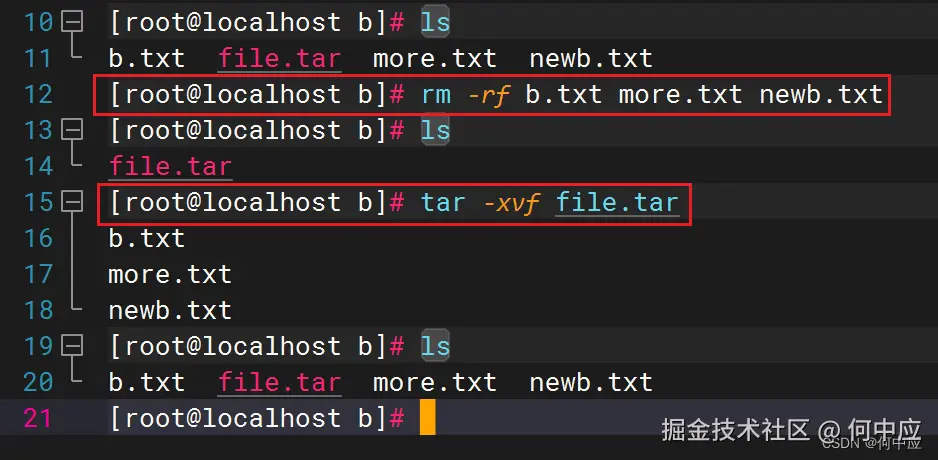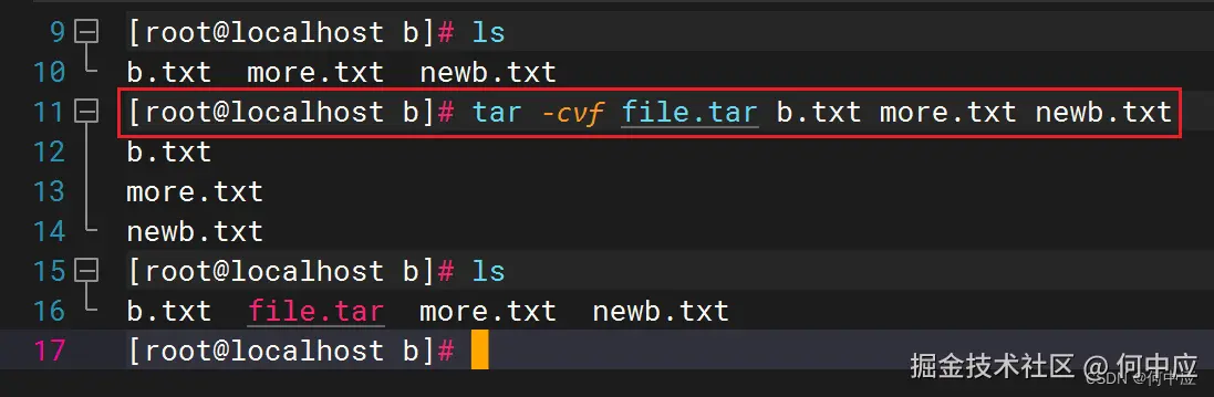 tar -cvf 压缩包名.tar 文件1 文件2 文件3:打包;
