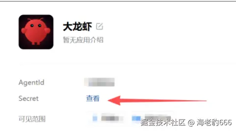 AgentId和Secret也要保存好,后面配置openclaw.json的时候需要填进去。