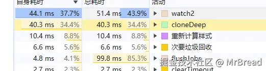 再次查看这个地方的性能分析,总耗时已经降下来了,来到了100ms