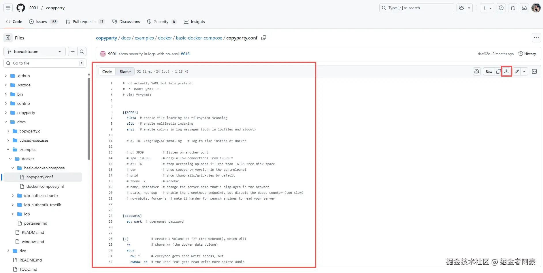 copyparty/docs/examples/docker/basic-docker-compose/copyparty.conf at hovudstraum · 9001/copyparty