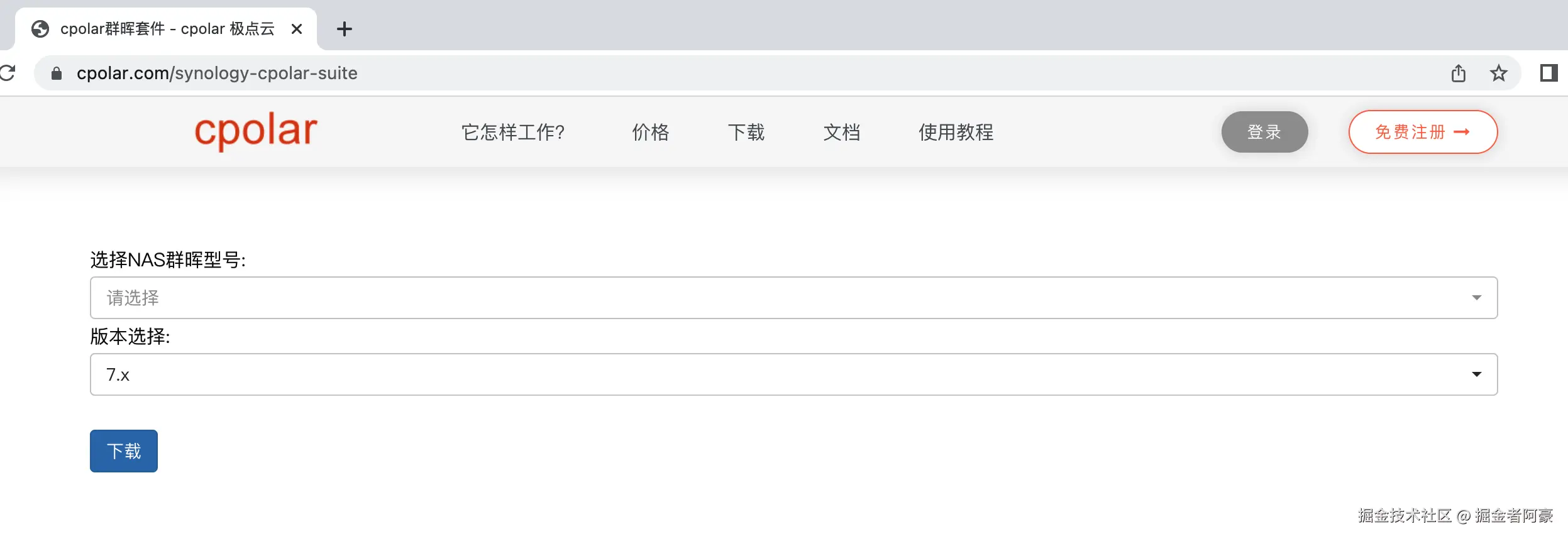 cpolar 提供了群晖安装的套件,点击下面Cpolar群晖套件下载地址,下载相应版本的群晖Cpolar套件,如果找不到对应的型号,可以选择相近版本型号套件。