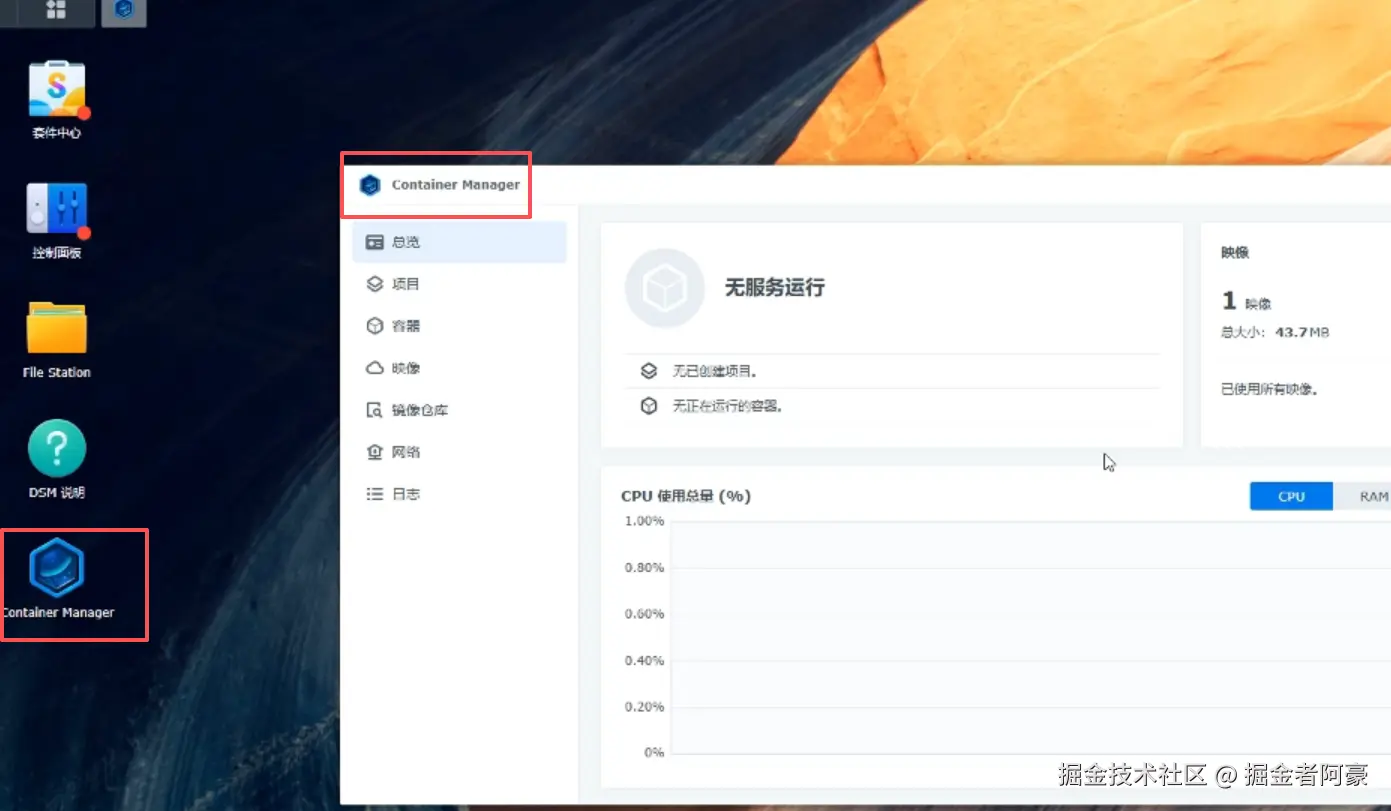 首先打开群晖的界面,确认有没有安装dokcer,也就是这个container Manager。
