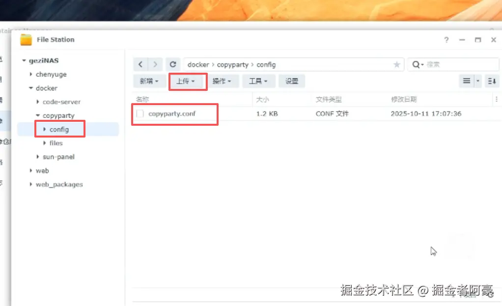 # 将 copyparty.conf 放入 config 目录中